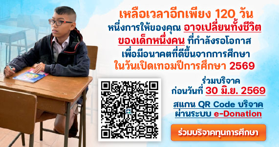 ร่วมเป็นส่วนหนึ่งในการมอบโอกาสทางการศึกษาให้เด็กสักคน ก่อนวันที่ 30 มิถุนายน 2569 เพราะ “โอกาสทางการศึกษา” ควรเป็นสิ่งที่เด็กทุกคนสามารถเอื้อมถึง