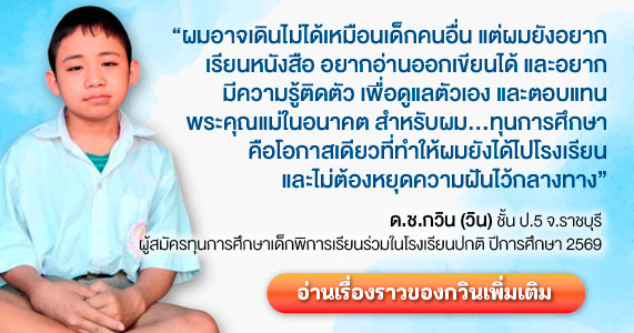 ทุนการศึกษาเด็กนักเรียนพิการเรียนร่วมในโรงเรียนปกติ |