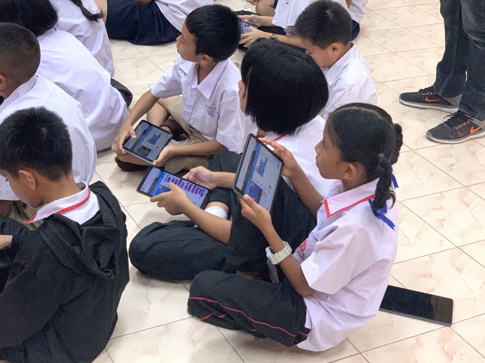 รวมถึงสังเกตการณ์การเรียนการสอนสะเต็มศึกษา (STEM) โค้ดดิ้ง (Coding) และการใช้แพลตฟอร์มเกมการเรียนรู้ CodeMonkey โดยครูอาสาสมัครที่ช่วยส่งเสริมให้นักเรียนรู้จักและเข้าใจการเขียนโค้ดดิ้ง (Coding) รู้จักคิดวิเคราะห์และแก้ไขอุปสรรคและปัญหาที่เผชิญได้เป็นอย่างดียิ่ง