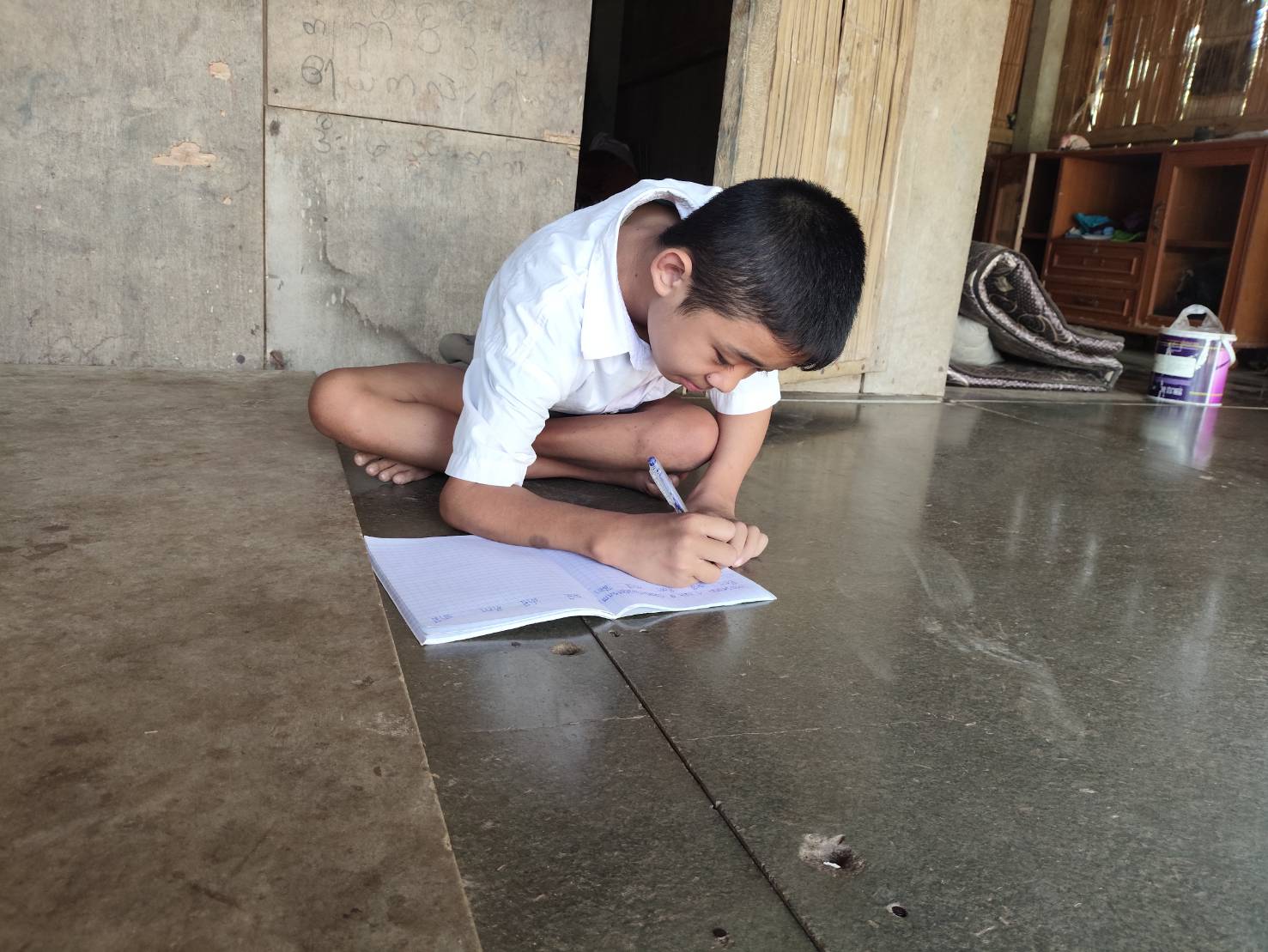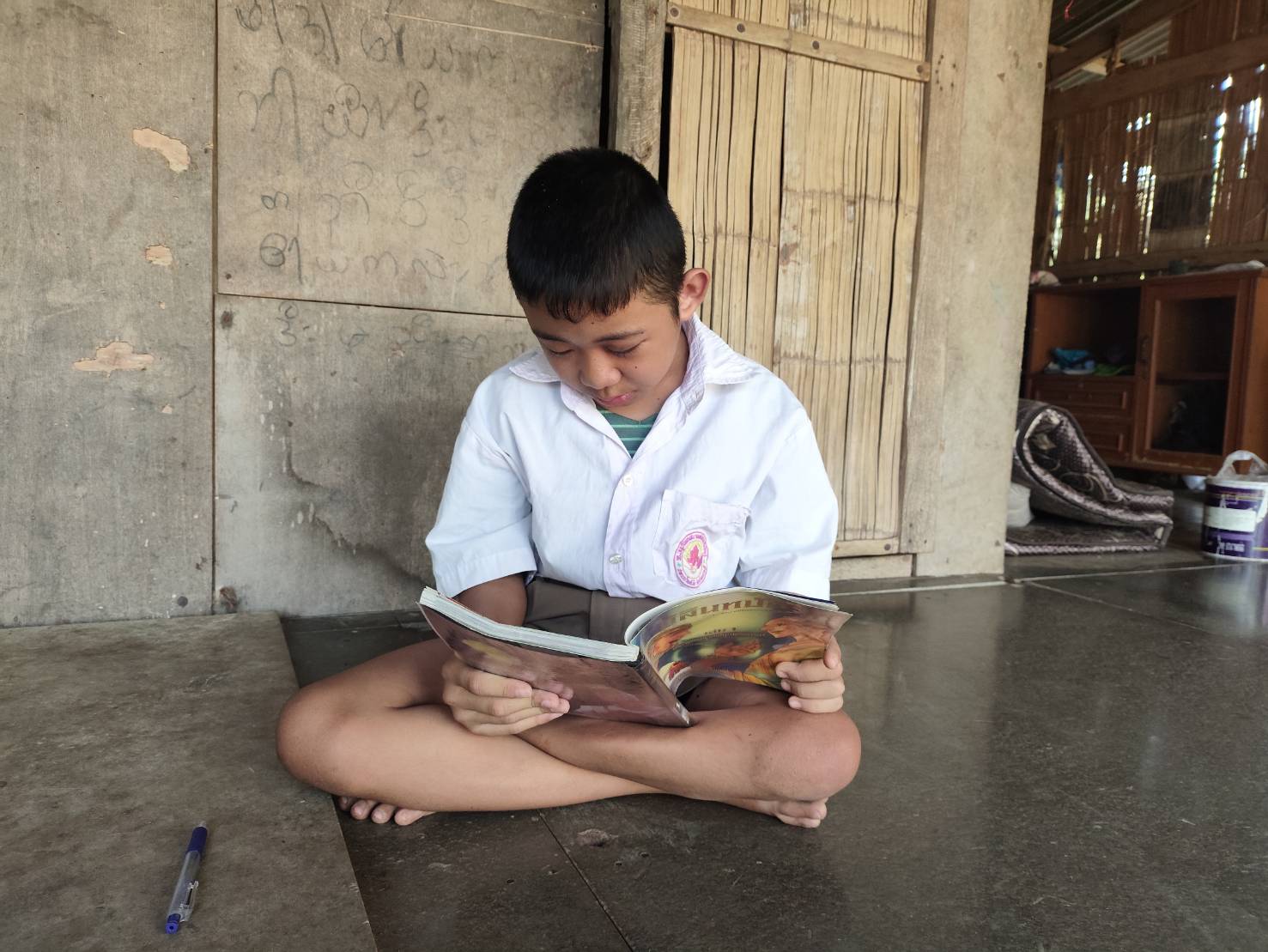 In his free time, Kawin helps his mother with household chores as much as he can, reviews his lessons, and enjoys reading.