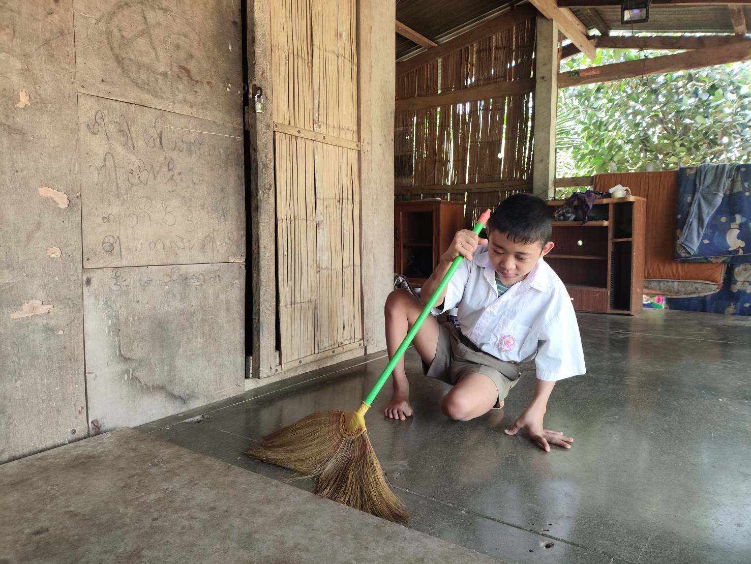 In his free time, Kawin helps his mother with household chores as much as his physical condition allows, reviews his lessons, and reads diligently.