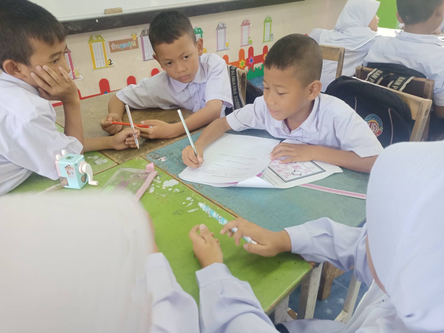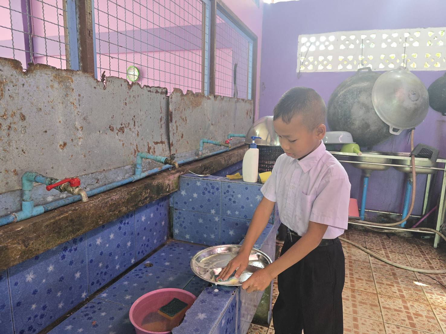 Every morning, an uncle takes the brothers to school. Their daily allowance of 20 baht must be carefully divided between savings and food. On some days, when there is no money at all, Taufiq is forced to miss school — even though school is the place he loves most, because it provides lunch and milk.