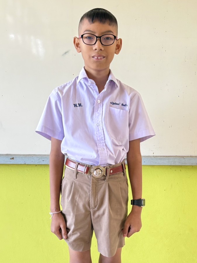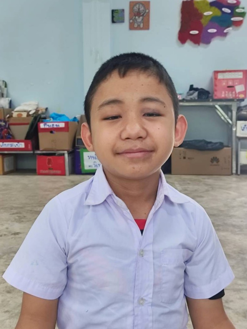 Oumboon, a 14-year-old boy, is currently studying in Grade 8 (Mathayom 2) at Weerawatyothin School in Surin Province. Born with a physical disability that affects his legs, he walks with difficulty due to deformed feet. Despite this challenge, he attends a mainstream school and strives to live life as independently as possible, determined not to let his disability limit his future.