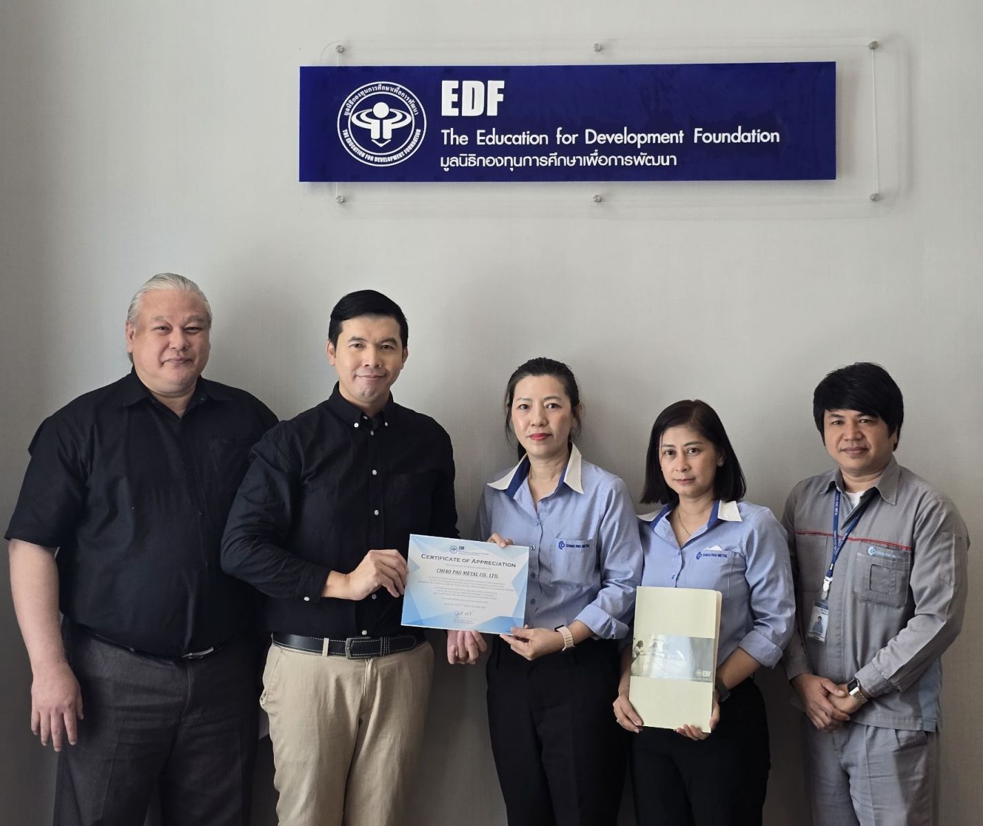 The EDF Foundation would like to extend our heartfelt gratitude to Chiao Pao Metal Co., Ltd. for their generous donation to support 48 scholarships for underprivileged and needy students in our foundation's program for the academic year 2024. The donations were a collective effort from the company's employees and executives through the "Dream Pursuing, Sharing Kindness: One Multiplied by Ten" project to support the foundation and those in need.
