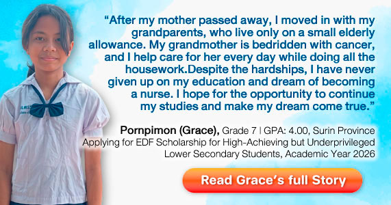 On behalf of the EDF Foundation, I sincerely thank you for standing with us and for helping open the doors of education and hope for underprivileged children across Thailand in the 2026 academic year.