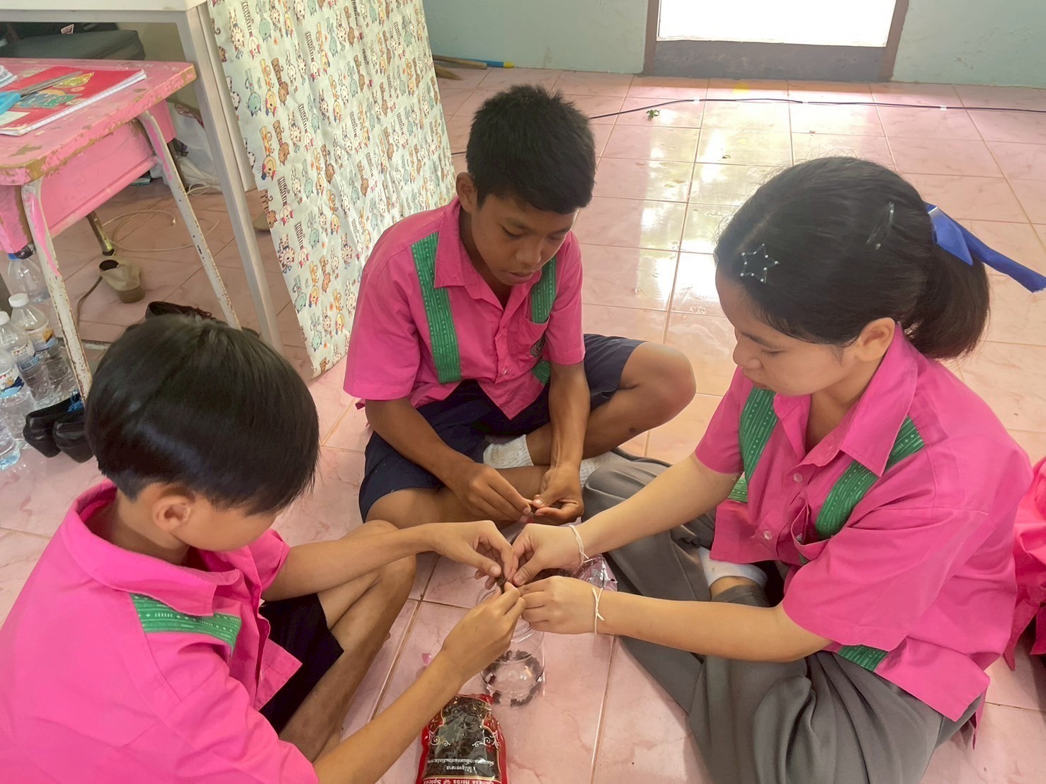 さらにEDF財団の職員は、ムクダハーン県のファイターペ学校におけるコンピューター教室の改修プロジェクトと、ナコーンパノム県のバーンハードクワン学校における生徒用バイク置き場の改修プロジェクトの進捗を確認しました。また、奨学生の自宅を訪問し、学習状況や将来の夢について聞き取りを行うとともに、各家庭に必要な生活用品を配布しました。