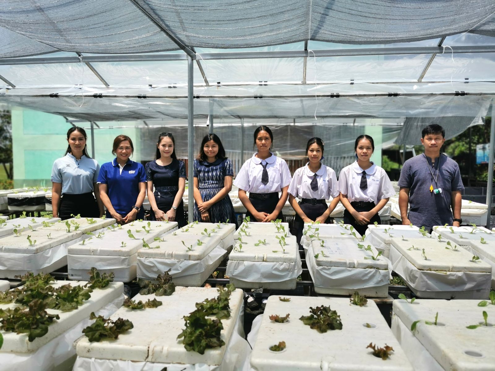 (3)ナコーンパノム県、バーンクワーンクリーチューチャート学校 : 生徒が水耕栽培の野菜とハーブ吸入剤(タイ語:ヤードム)を作る職業技能訓練プロジェクトを実施。