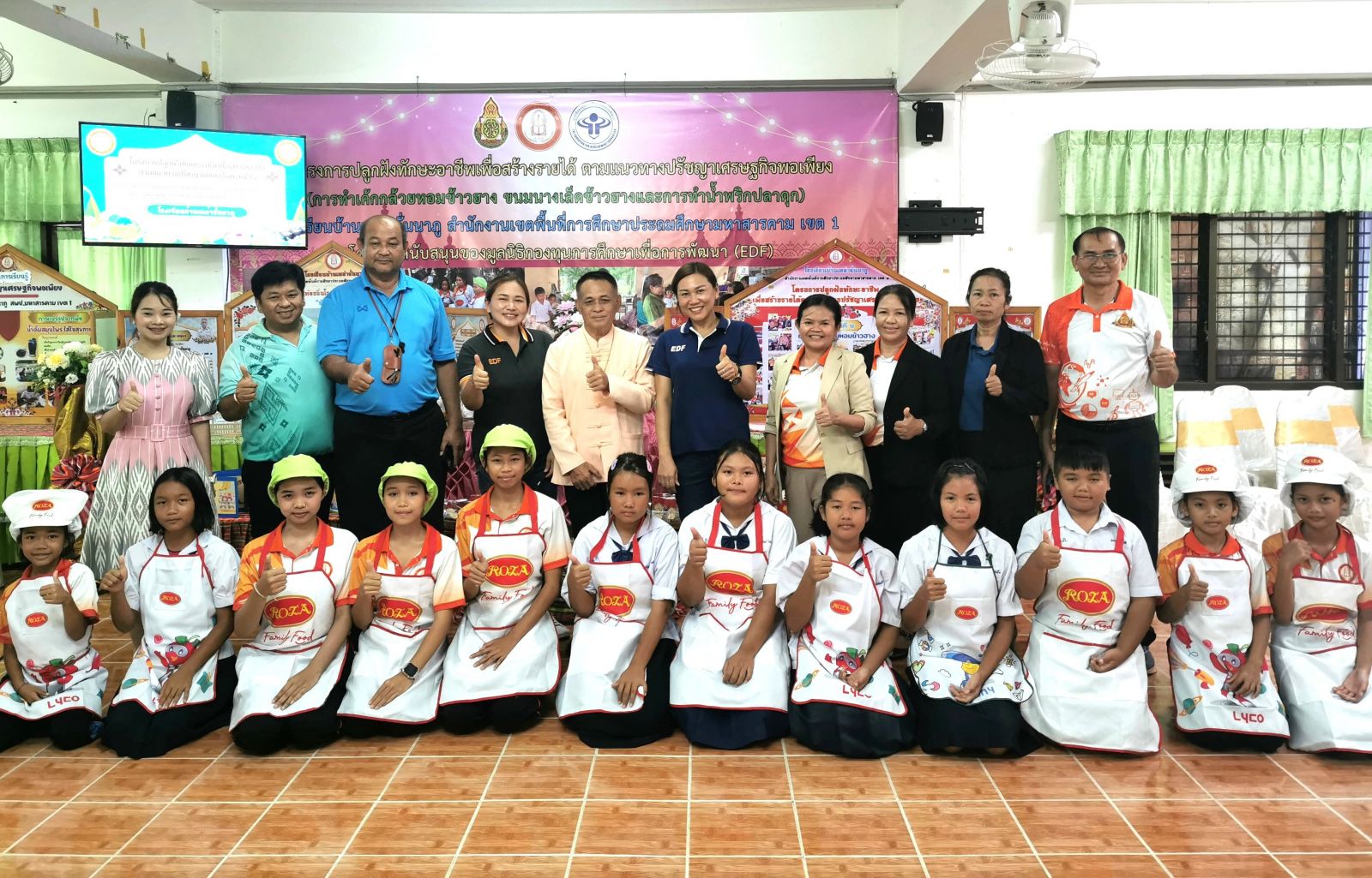 (1)マハーサーラカーム県、バーンラオチャンナプー学校 : 発芽玄米(タイ語:カオハーン)でできたカオハーンのサクサク菓子、カオハーンのバナナケーキやナマズのチリペーストなど地元食材を加工し付加価値を生み出すプロジェクトを実施。